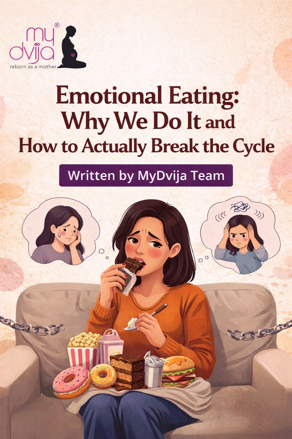 The problem is, we’re not actually dealing with whatever’s bothering us. We’re just covering it up temporarily with food. Twenty minutes later, the stress is still there, but now you’ve also got guilt and regret added to the mix. It’s a crappy cycle. Explore MyDvija’s course and start your training with us today – Nutrition & Diet- new mother (English)